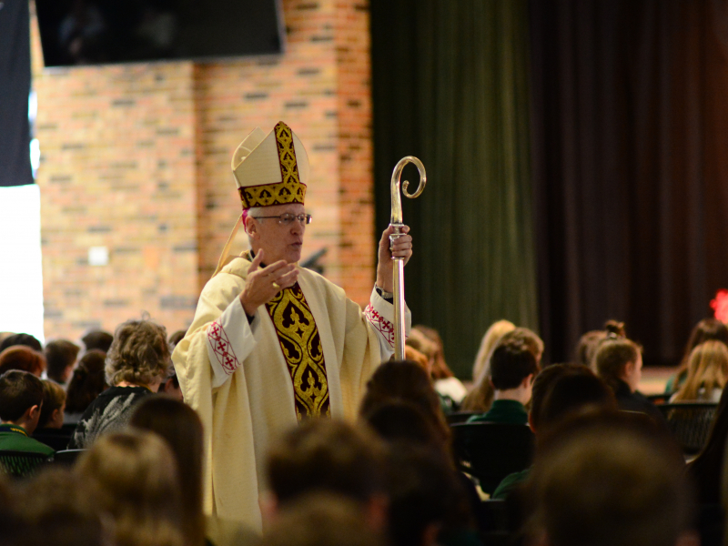 Young people unsure of their future should place their lives, their hopes and their dreams before God in prayer – that was the advice of Bishop Earl Boyea of Lansing to the senior students at Lumen Christi Catholic School in Jackson, January 7.