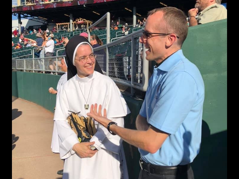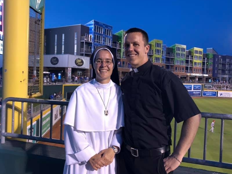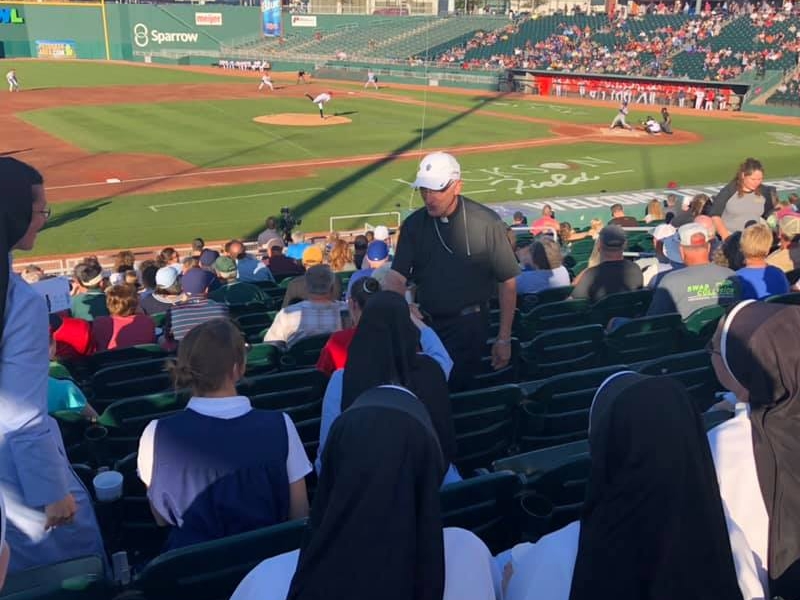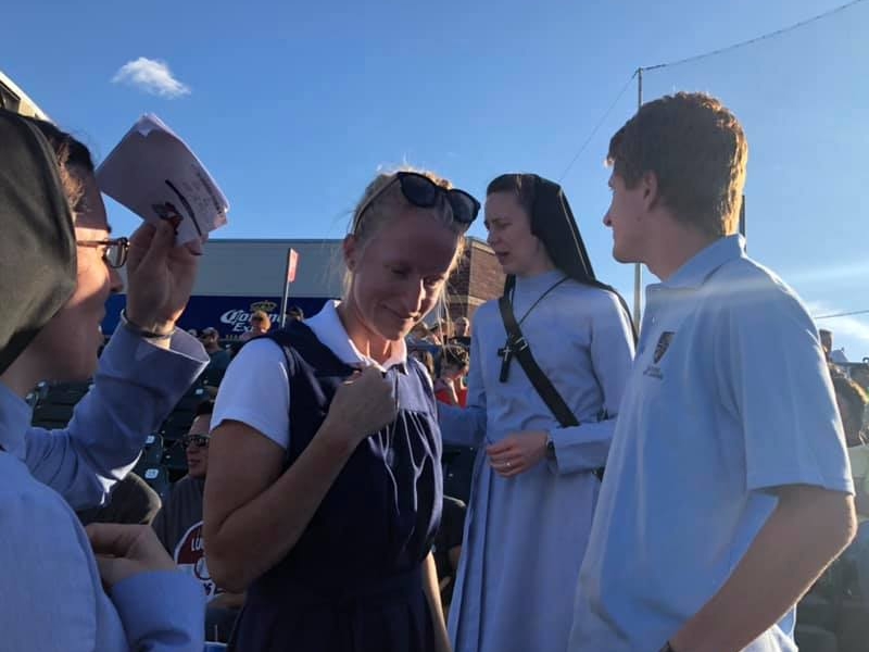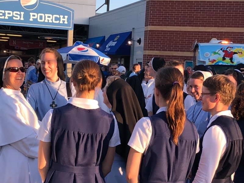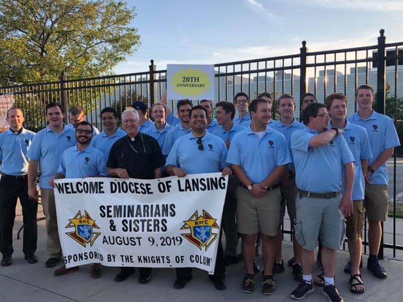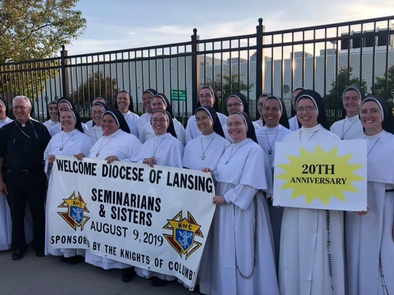 This was the 20th year that the Knights of Columbus have organized the annual event. As ever, it proved popular with both families and parishes. There to meet and greet them in the bleachers was Bishop Earl Boyea of Lansing as well as diocesan priests and female religious including Michigan's Dominican Sisters of Mary, Mother of the Eucharist, and the Sisters of Mercy of Alma.