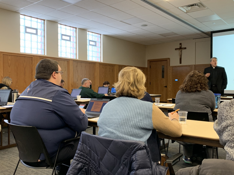 Maloney’s comments came during a one-day meeting of principals from across the diocese’s 32 schools being held at the Diocesan Offices in Lansing. During the day, those present were presented with new curriculum materials on the Theology of the Body created by Ruah Woods Press, a Theology of the Body education center located in Cincinnati, Ohio.