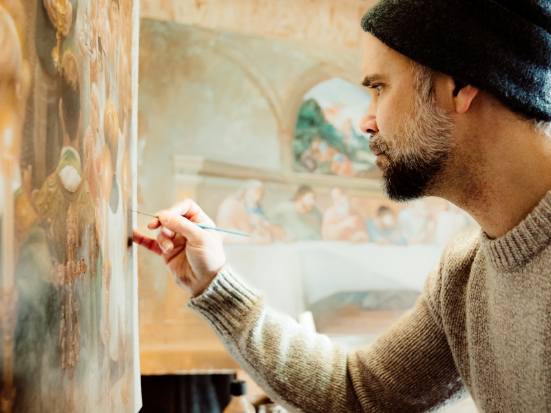 Joseph Macklin: I felt grateful and honored to have been asked to co-create this year’s DSA image. I say “co-create” because any project from the Instrumentum Dei Studio is produced in a spirit that recognizes that it’s not just the painter who brings a project to fruition — our heavenly Father is the ultimate author and the ultimate creator.
