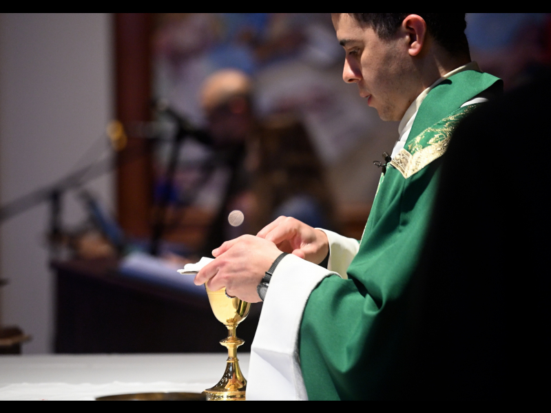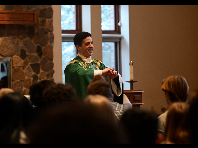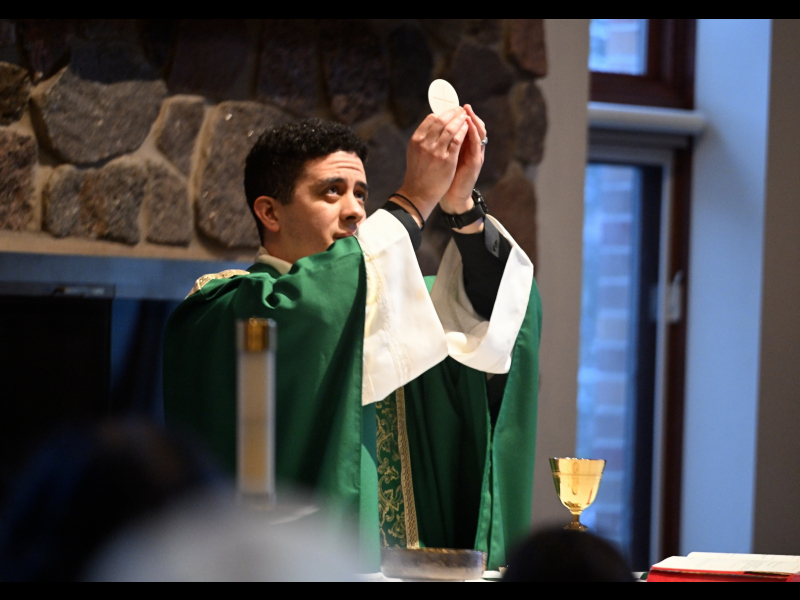 Each Outpouring Retreat weekend includes Holy Mass; confessions; Eucharistic adoration and presentations geared towards helping young people to recognize their dignity and calling as children of God. The events have become so powerful and well-known that the most recent retreat, held at Saint Francis Retreat Center in DeWitt in January 2023, was a sell-out. Here are some images from that occasion as Father Mark Martin of Saint Gerard parish offers Holy Mass.