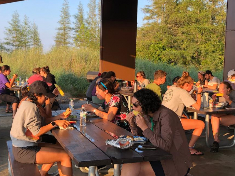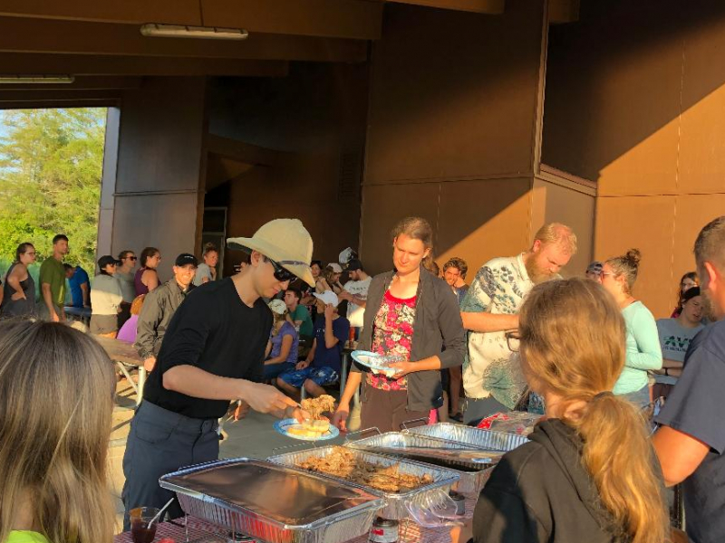 “After prayer at the Cross in the Woods, we bussed it back to Cheboygan State Park to have an amazing pulled-pork dinner on the beach pavilion as some of us then went in Lake Huron to wash off and watch the sun set over the water before heading back for our final bonfire and reflections and prayer of the day. Sunday morning, we finished our time together by returning to the Cross in the Woods for their outdoor Mass. We thank the Lord for his many blessings individually as well as collectively experienced. We pray that the blessings of the weekend continue in the lives of the pilgrims and strengthen them in their faith.”
