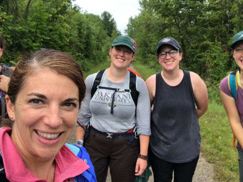 “Friday through Sunday we set up camp at Cheboygan State Park without normal amenities and made a 13.5-mile hiking trek down the North Central Trail along Mullet Lake to the Cross in the Woods (our Pilgrimage destination) in the glorious rain. God surely wanted to purify and stretch us on this mission.”