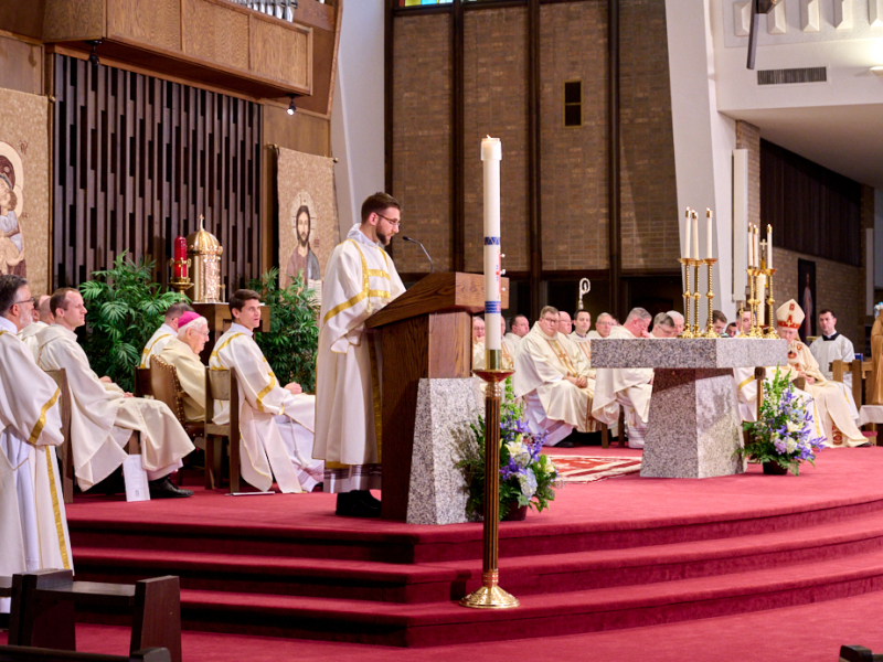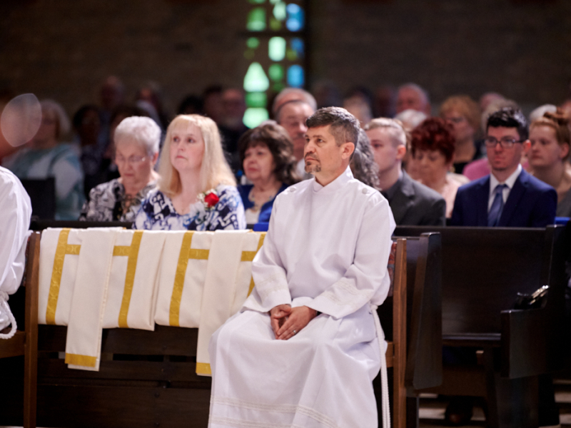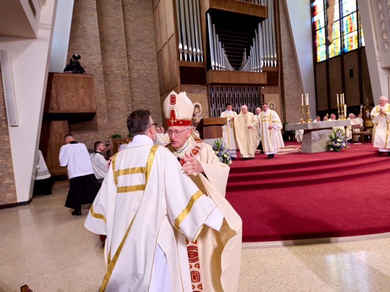 Many thanks to the St. Thomas-St. John Parish and the Diocesan staffs for their work in preparing for today’s celebration. Thanks to the choir, servers, lectors, and all others contributing to our celebration today. Thanks to Deacon Randy Desrochers and Fr. John Whitlock and all those involved in their formation, including the professors who taught them. Thanks to the faculty present from Sacred Heart Seminary. Finally, many thanks to family members who have shared the faith, prayed, and supported these, our brothers.