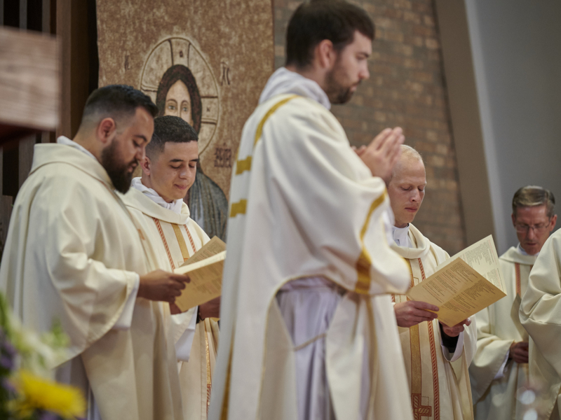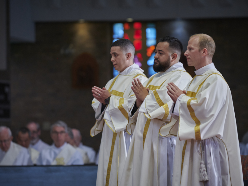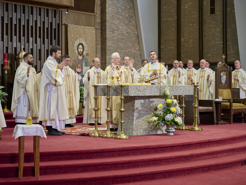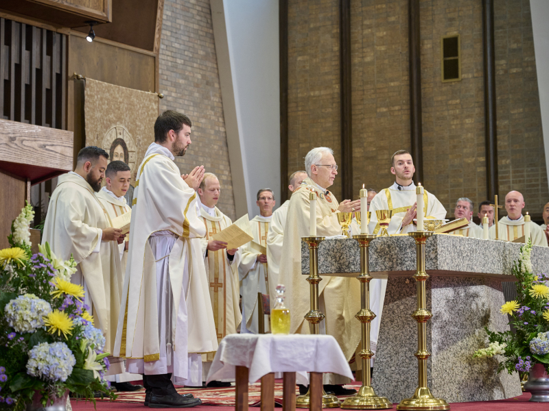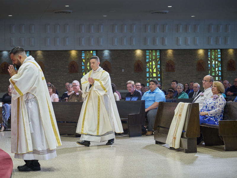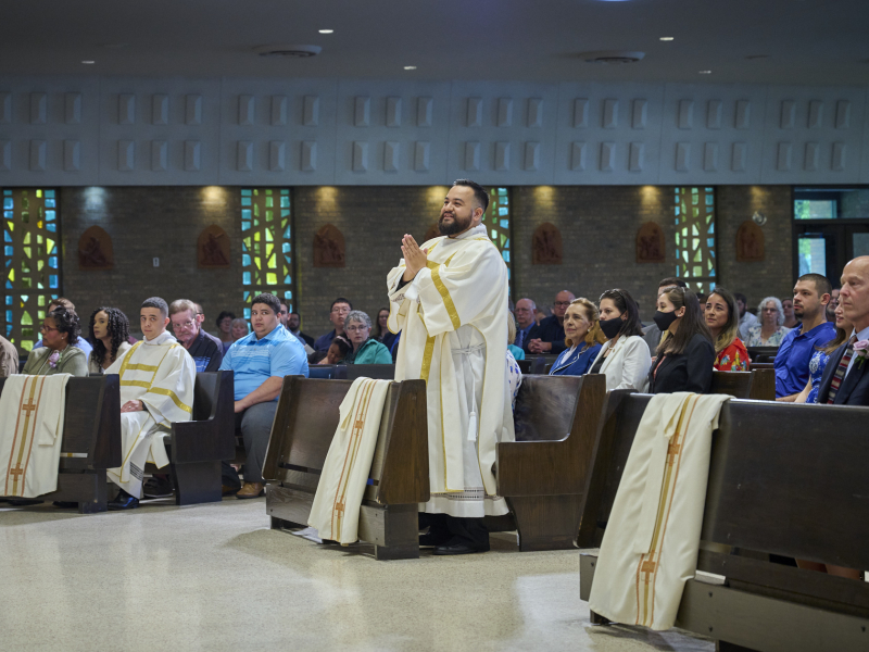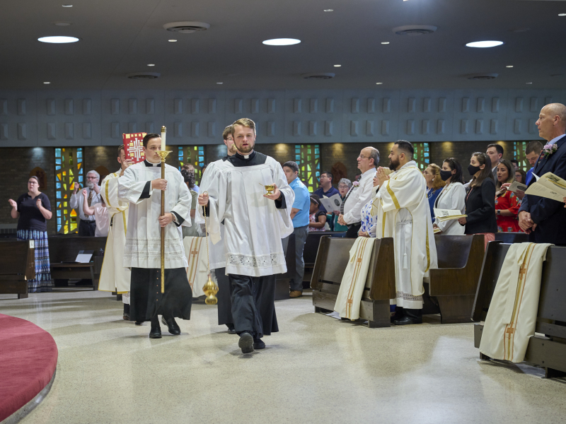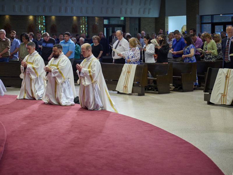 Thanks to Fr. Gordon Riegle and the staff of St. Thomas and St. John; the faculty of St. John Vianney Seminary and the faculty of Sacred Heart Major Seminary; Jeremy Priest and diocesan staff; Fr. John Whitlock and Denise Dell’Acqua; parents and family members of those to be ordained—welcome and thank you for your support of their vocations; invite all the seminarians present to stand; invite all the priests to stand.
