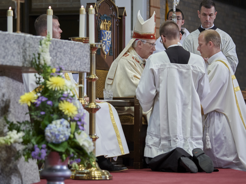 My dear sisters and brothers, we are all invited to consider carefully the nature of the order to which these, our brothers, are to be ordained today. God has made, as we know, his entire holy people a royal priesthood. However, Jesus also chose his apostles to be his sacramental presence for building up the Body of Christ in service to all of us. These apostles and those subsequently ordained after them are configured to Jesus the High Priest. As a result, they are able to offer the Lord’s sacrifice on our behalf to the Heavenly Father.