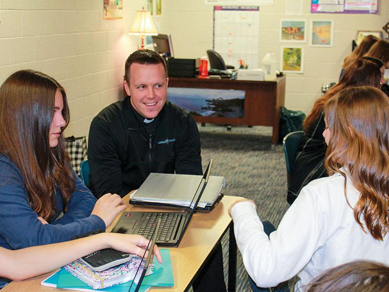 While he focuses on faith formation, Father Campbell is realistic about the amount of time he has to make an impact on the spiritual growth of Lansing Catholic students.