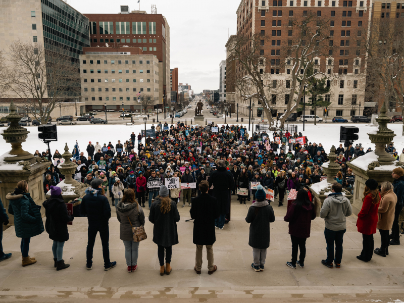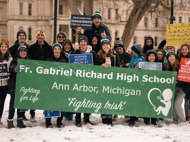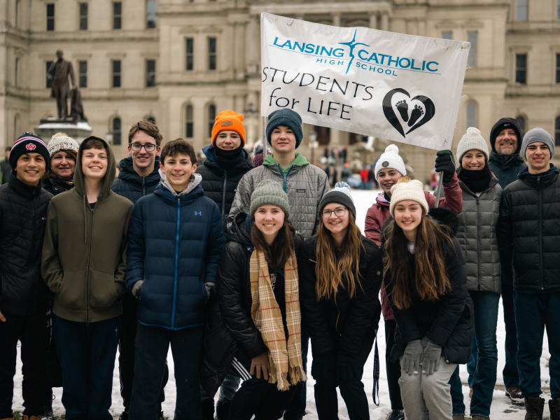 Student groups from Lansing Catholic High School and Father Gabriel Richard High School in Ann Arbor were among the crowds at the Capitol building on Saturday. Saint Mary parish in Williamston also brought a delegation of parishioners to the rally.