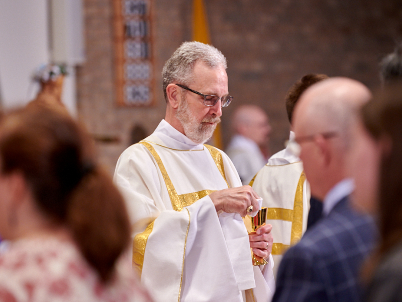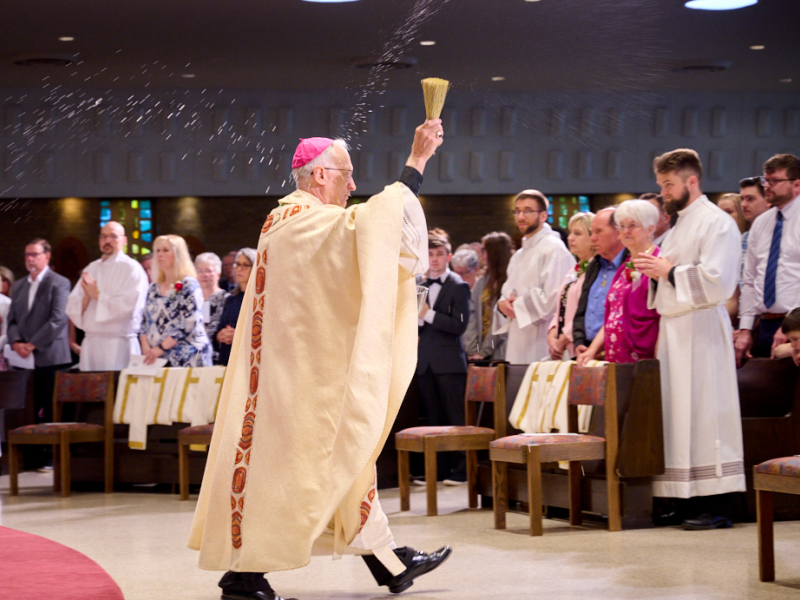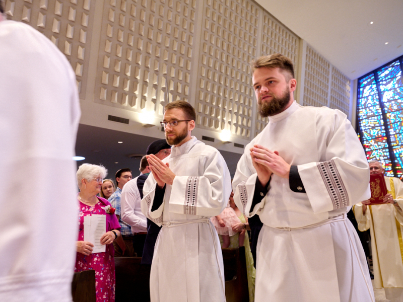 The Ordination Mass for ten men to the Diaconate that took place at St. Thomas Aquinas Parish in East Lansing on Saturday, May 13. The atmosphere in the church was filled with joy and excitement as the congregation celebrated this special occasion. The Most Reverend Earl Boyea led the ceremony and offered a prayer of blessings, "May God who has begun a good work in you, bring it to fulfillment!" It was a heartwarming sight to see the ten men receive their ordination and take on their new roles as deacons in the Catholic Church. The newly ordained deacons include Deacon Jasen Wright from St Joseph in Howell, Deacon David Taccolini from St. Thomas the Apostle in Ann Arbor, Deacon Ray Rzepecki from St Gerard in Lansing, Deacon Eric Pogrmich from St Joseph in Howell, Deacon John Goff from St. Joseph in Dexter, Deacon Bill Kenney from St. Agnes in Fowlerville, and Deacon Jim Collom from St. Martha in Okemos. Additionally, we congratulate our seminarians, Deacon Joshua Fons from Christ the King Parish in Ann Arbor and Deacon Riley O'Shea from St. Michaels in Grand Ledge, who were ordained to the transitional diaconate. It was truly a remarkable event.
