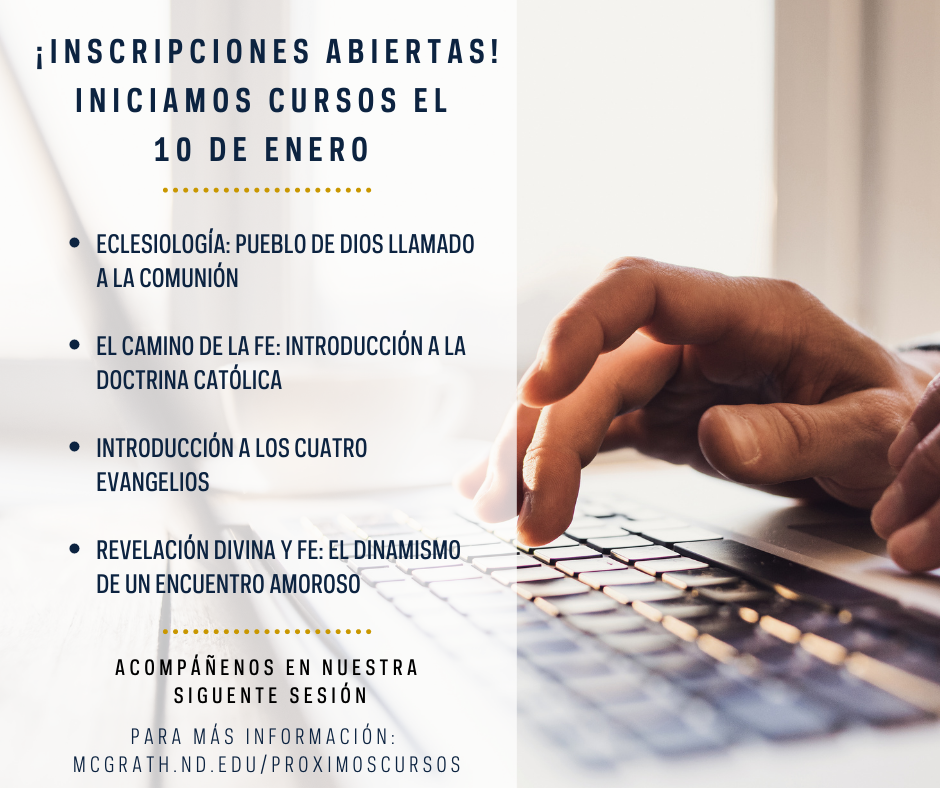 Descubra la riqueza de la fe católica y fortalezca su compromiso de servicio en la comunidad, estudiando y compartiendo con otros participantes en cursos en línea creados por profesores y líderes en el ministerio hispano.