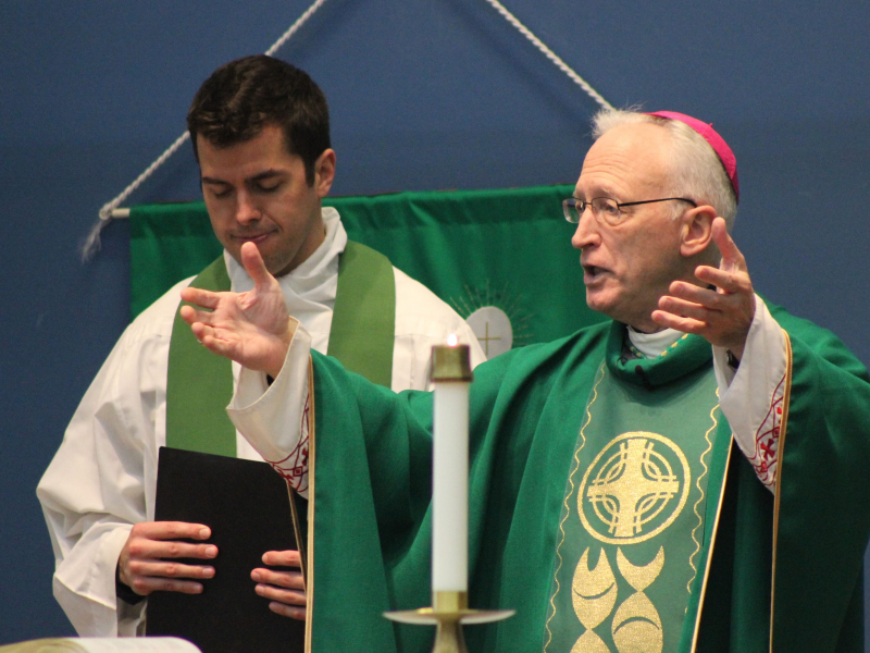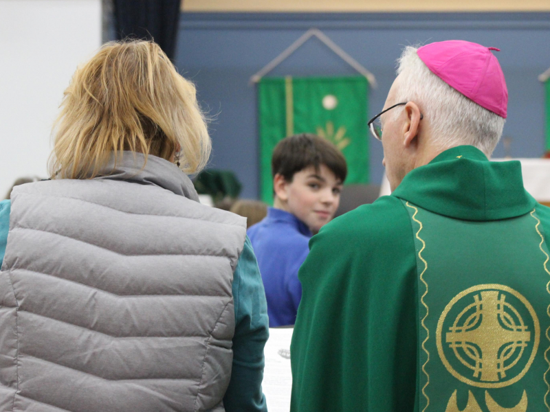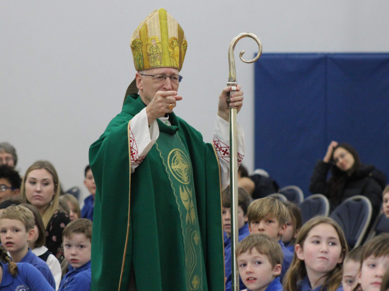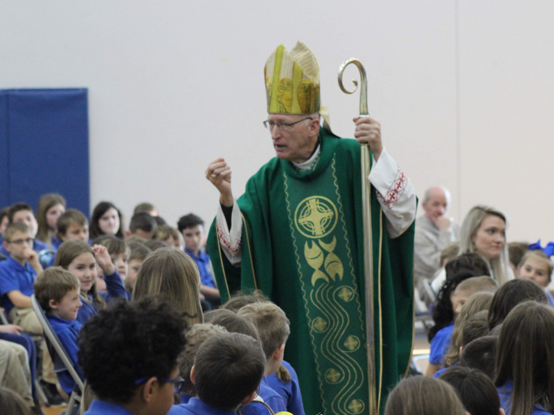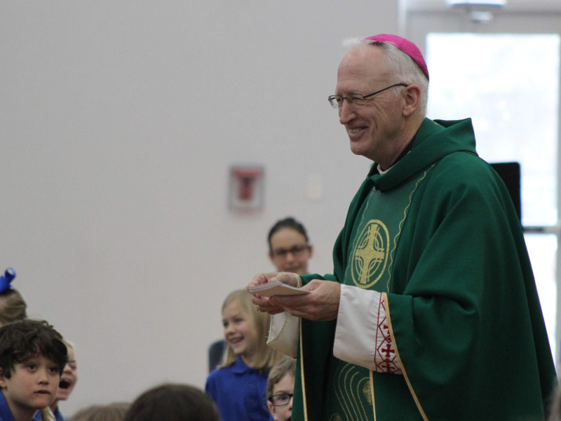 Bishop Earl Boyea of Lansing restated his enthusiastic support for the mission and work of Catholic schools during a visit to Huron Valley Catholic School in Washtenaw County, January 15.
