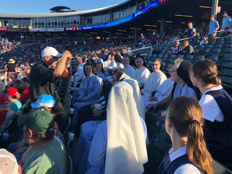 This was the 20th year that the Knights of Columbus have organized the annual event. As ever, it proved popular with both families and parishes. There to meet and greet them in the bleachers was Bishop Earl Boyea of Lansing as well as diocesan priests and female religious including Michigan's Dominican Sisters of Mary, Mother of the Eucharist, and the Sisters of Mercy of Alma.
