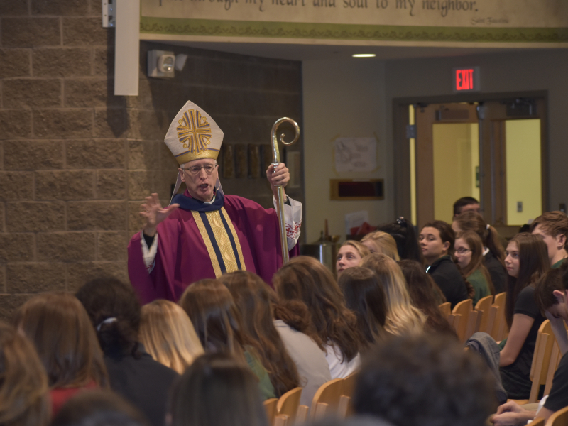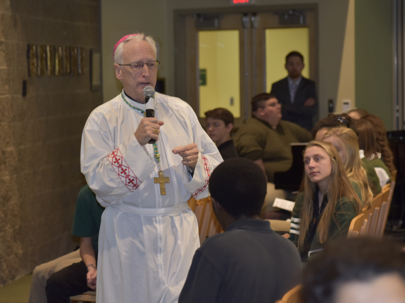 The students and staff of Father Gabriel Richard High School in Ann Arbor prayerfully prepared for Christmas this morning with Holy Mass preceded by a Q&A session with Bishop Earl Boyea of Lansing.