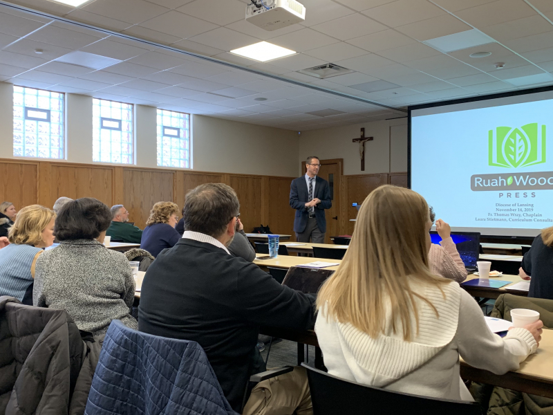 Maloney’s comments came during a one-day meeting of principals from across the diocese’s 32 schools being held at the Diocesan Offices in Lansing. During the day, those present were presented with new curriculum materials on the Theology of the Body created by Ruah Woods Press, a Theology of the Body education center located in Cincinnati, Ohio.
