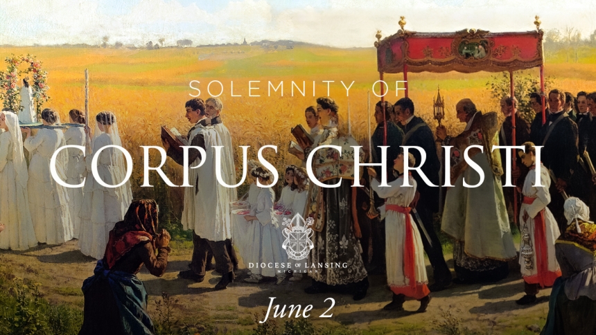 Catholics across the United States will celebrate the Solemnity of Corpus Christi this weekend, Sunday, June 2. To mark the occasion, many parishes across the Diocese of Lansing will be making a pilgrimage through the streets of their locality with the Blessed Sacrament carried aloft in a display of public adoration.