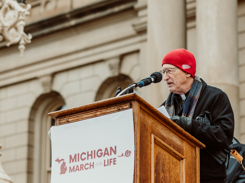 Holy Mass was followed by a rally in the rain at the State Capitol emceed by the former Channel 4 (WDIV-TV) news anchor and meteorologist, Chuck Gaidica. Among the speakers were the President of Right to Life of Michigan, Barb Listing, and the national President of the March for Life, Jeanne Mancini. The keynote address was given by Genecia Davis, the founder of Black Girls for Life, who shared her personal story of abortion and subsequent path to peace.