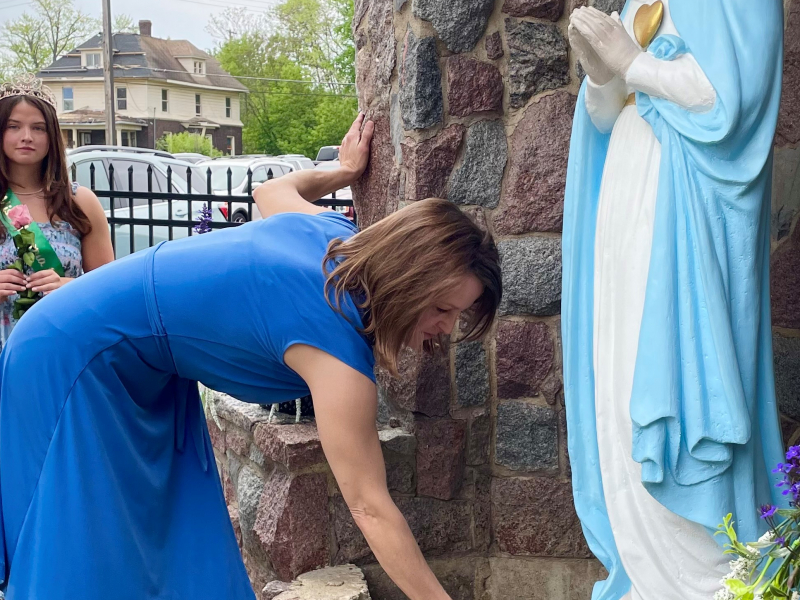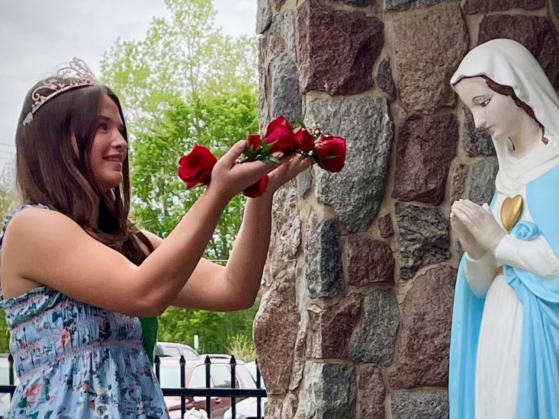 Our Lady was crowned by Miss Gracie Spezia who is Miss Hibernian, a title bestowed upon her by the Flint Chapter of the Ancient Order of Hibernians who are financial supporters of Catholic Charities.