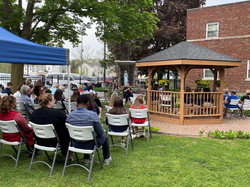 The Holy Rosary was prayed and Marian anthems were sung before those present adjourned for celebratory refreshments supplied by the parishioners of Saint Pius X in Flint and Saint Robert Bellarmine in Flushing.