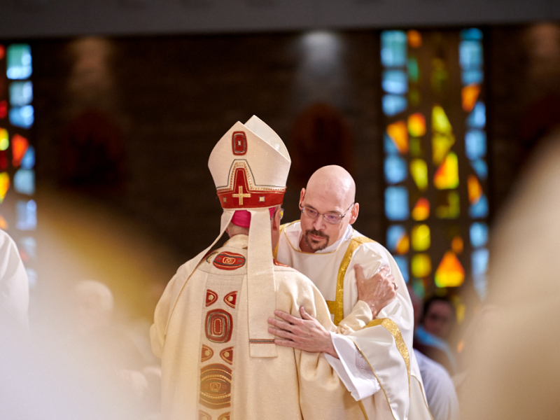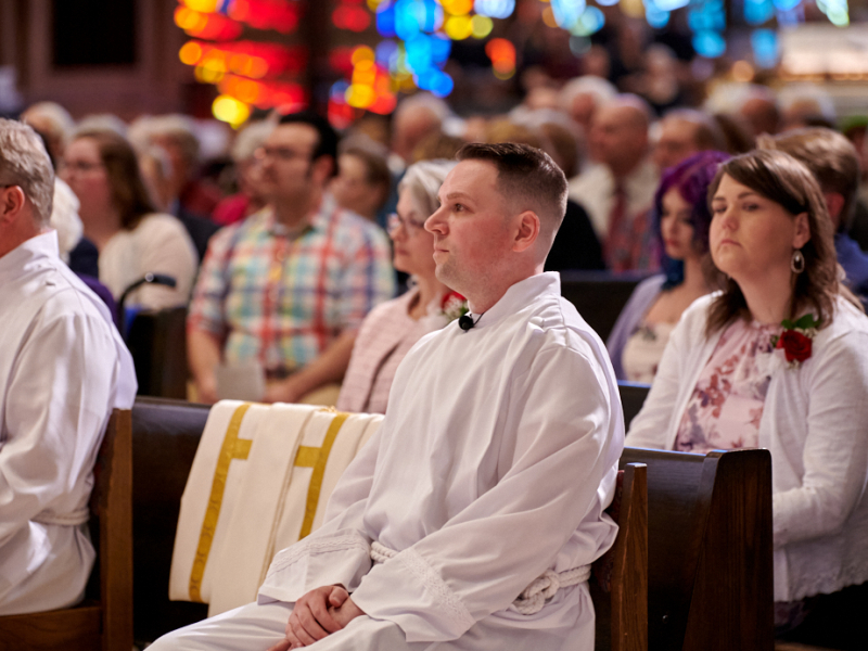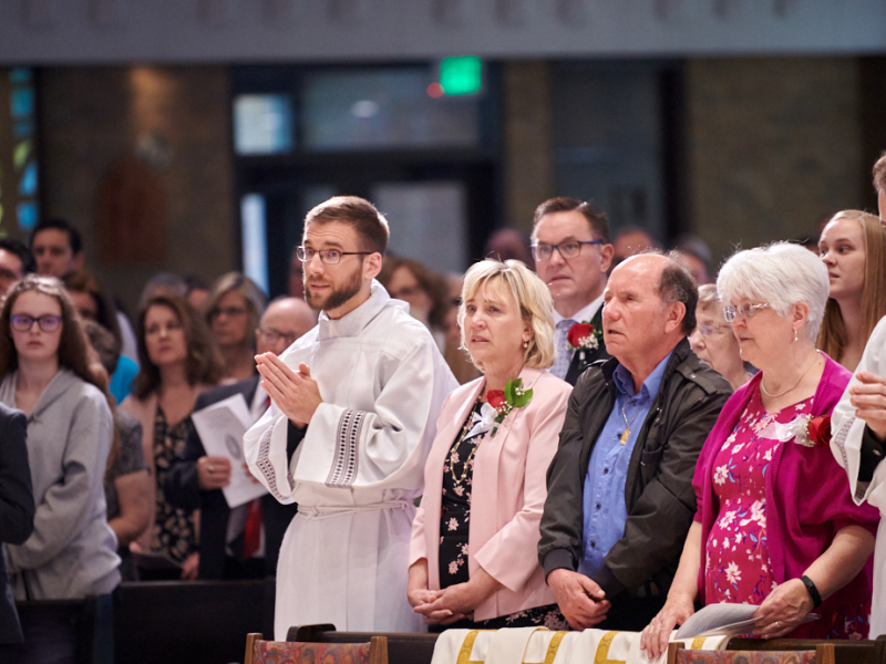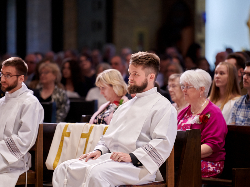 Many thanks to the St. Thomas-St. John Parish and the Diocesan staffs for their work in preparing for today’s celebration. Thanks to the choir, servers, lectors, and all others contributing to our celebration today. Thanks to Deacon Randy Desrochers and Fr. John Whitlock and all those involved in their formation, including the professors who taught them. Thanks to the faculty present from Sacred Heart Seminary. Finally, many thanks to family members who have shared the faith, prayed, and supported these, our brothers.