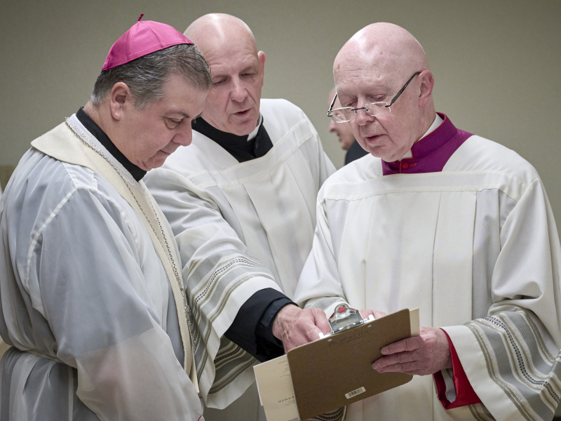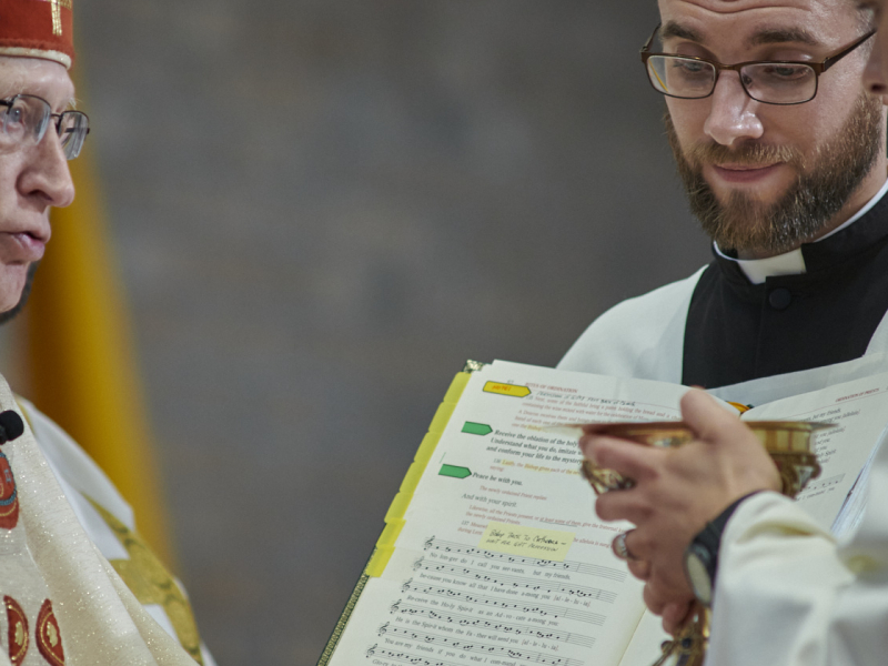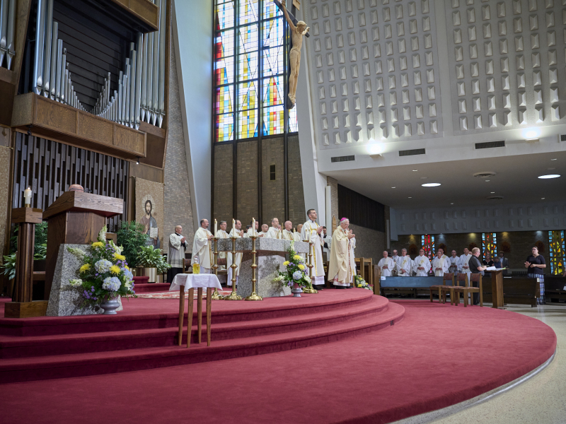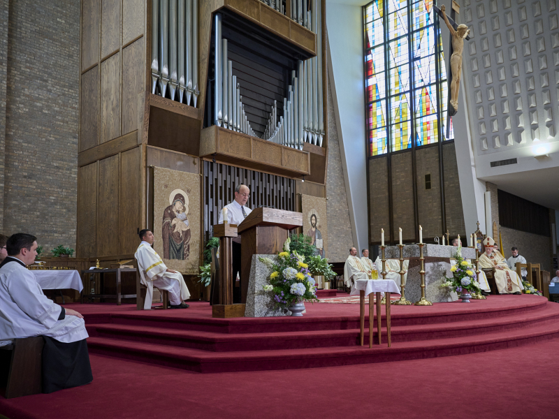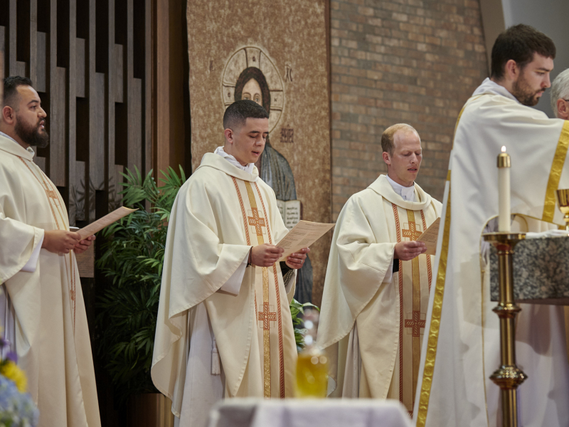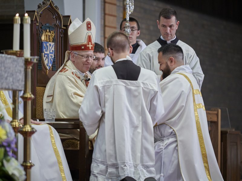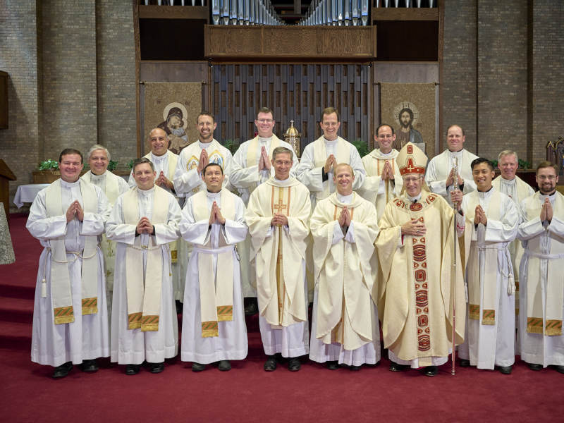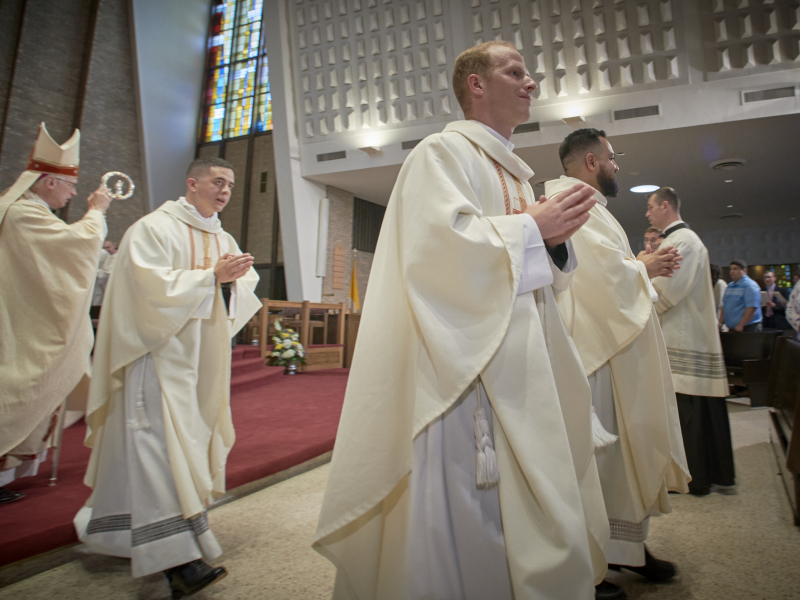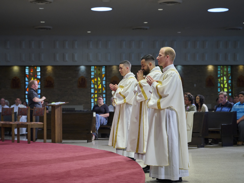 Thanks to Fr. Gordon Riegle and the staff of St. Thomas and St. John; the faculty of St. John Vianney Seminary and the faculty of Sacred Heart Major Seminary; Jeremy Priest and diocesan staff; Fr. John Whitlock and Denise Dell’Acqua; parents and family members of those to be ordained—welcome and thank you for your support of their vocations; invite all the seminarians present to stand; invite all the priests to stand.